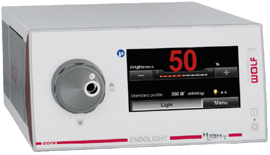 램프에서 발생되는 빛을 광케이블을 이용하여 내시경에 전달하여 시술부위에 조명하는 기기